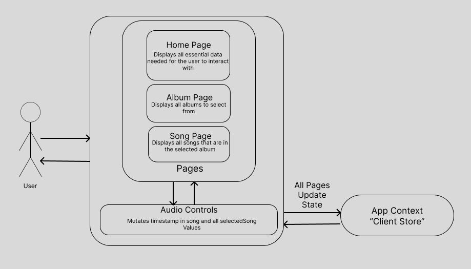 2.) For efficient tracking of user-selected data and page navigation, I utilized the useContext hook in React. This choice simplified global state management, making it easier to show selected albums and songs, and switch between pages without page refreshes.
